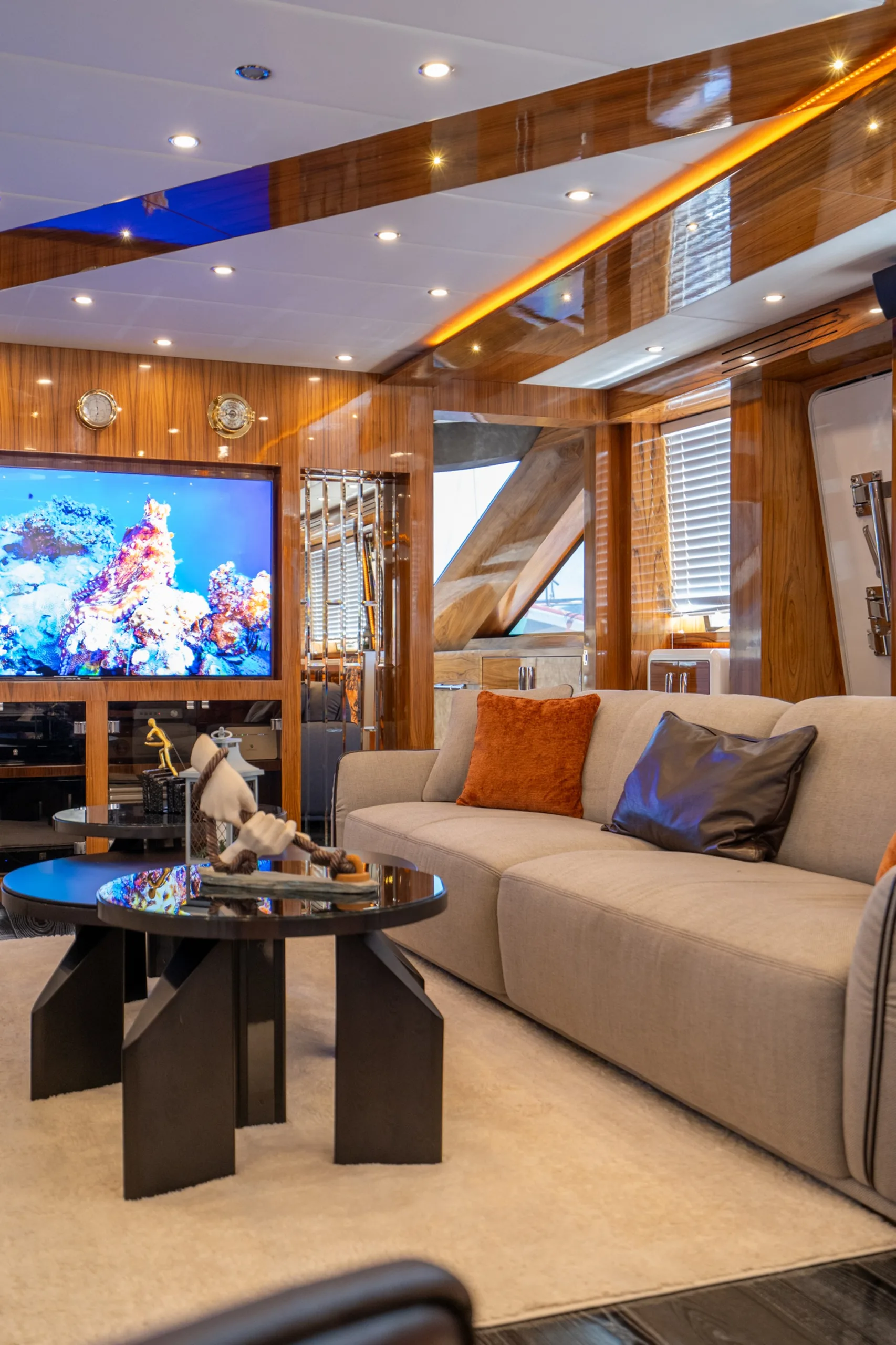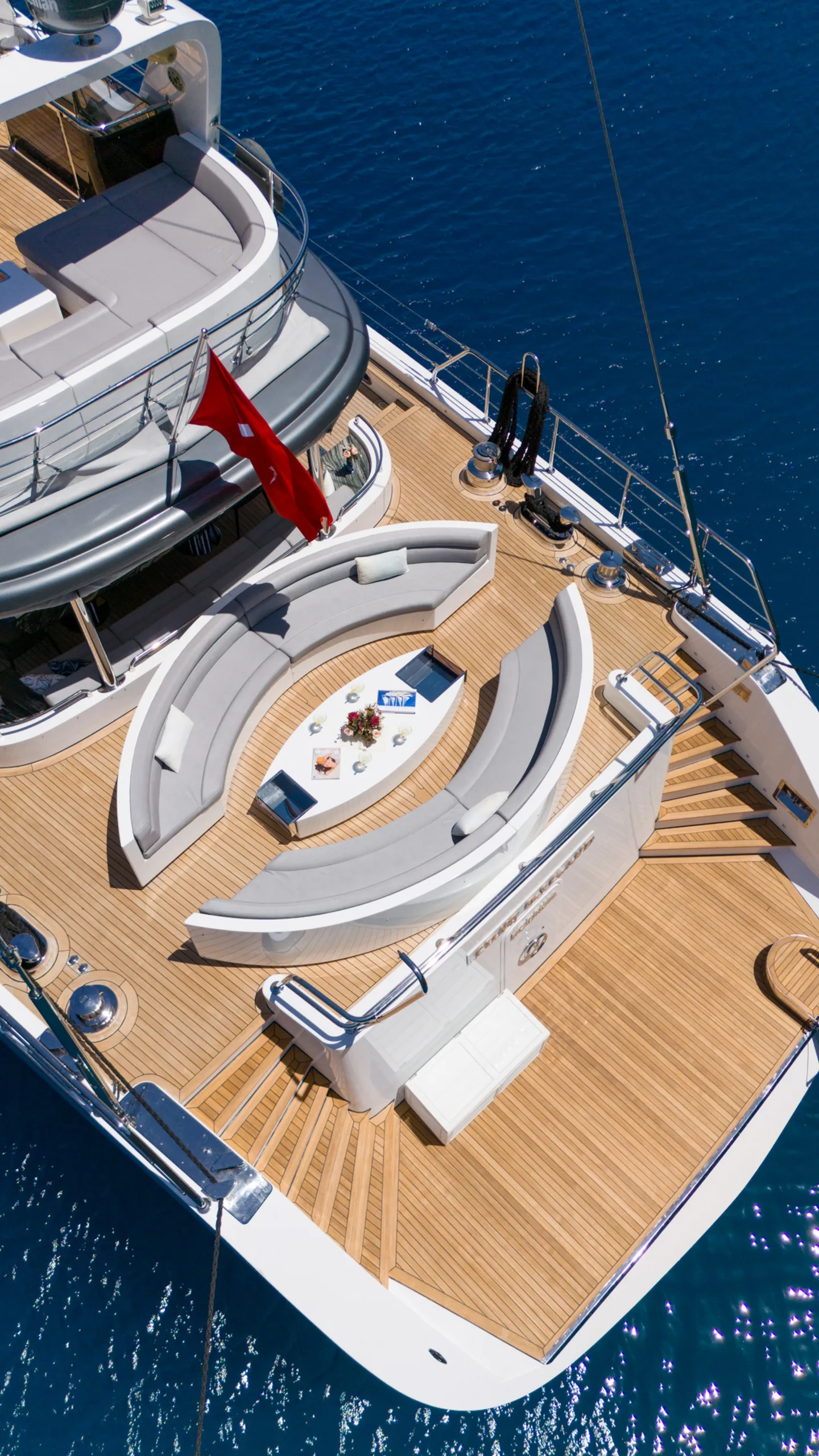 Long Island è l’esempio perfetto di un caicco moderno: ampia piattaforma da bagno, ampio salone direttamente sul pozzetto, fly deck molto spazioso.