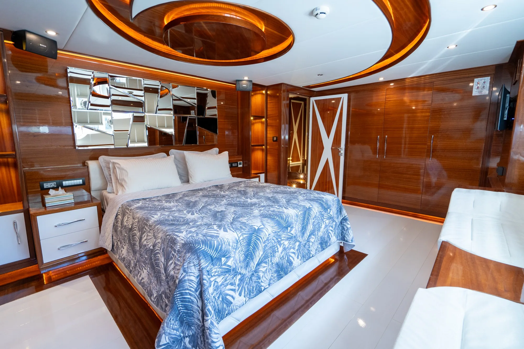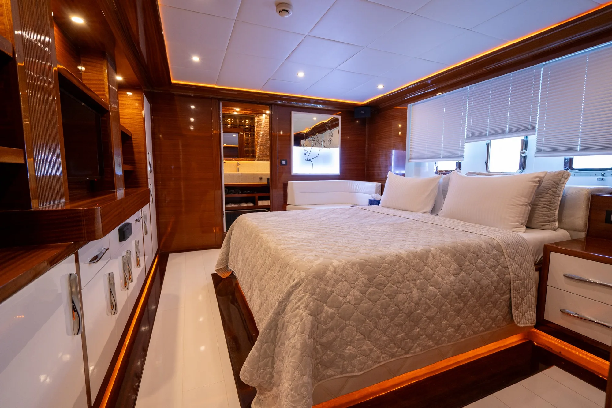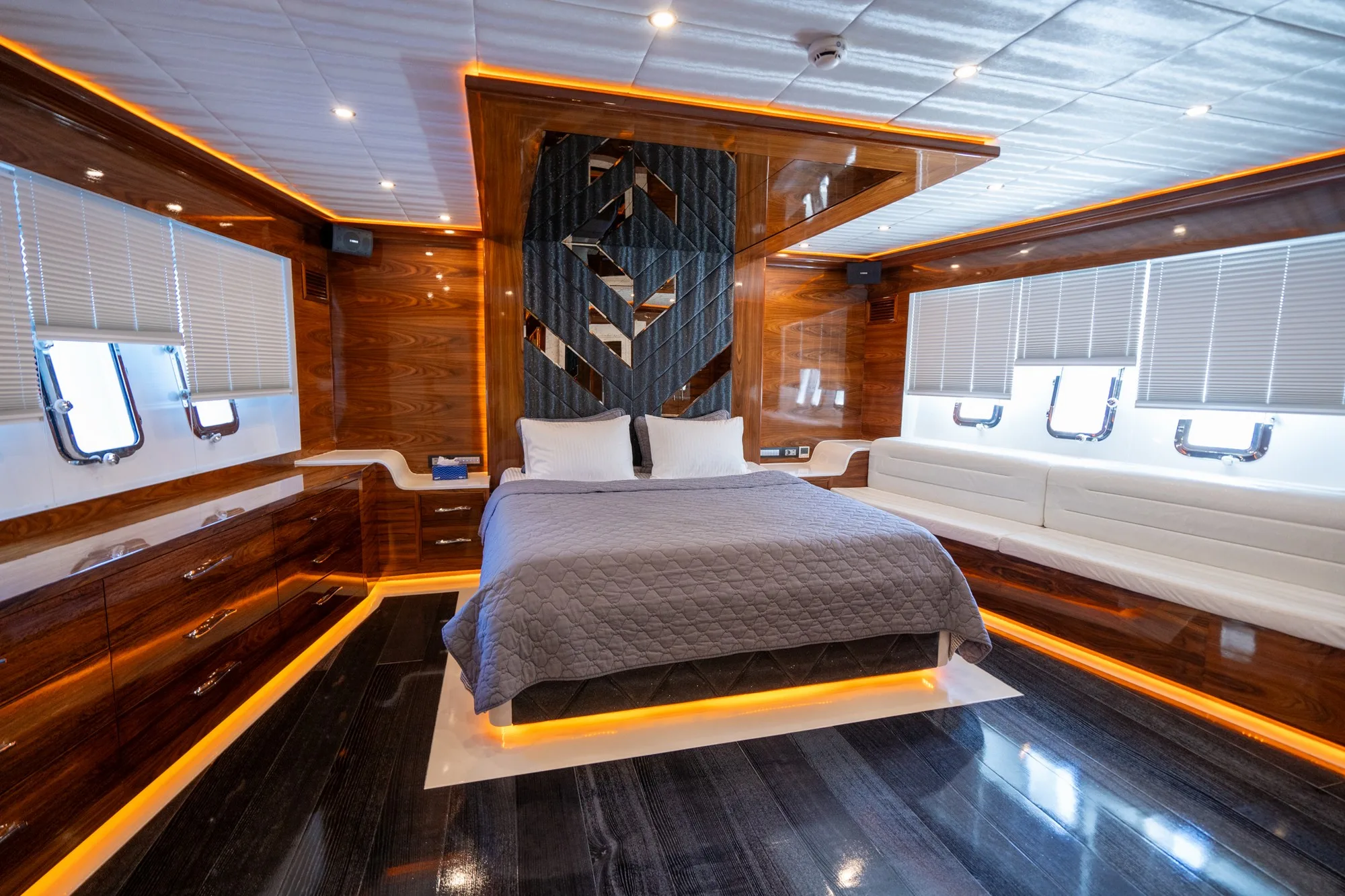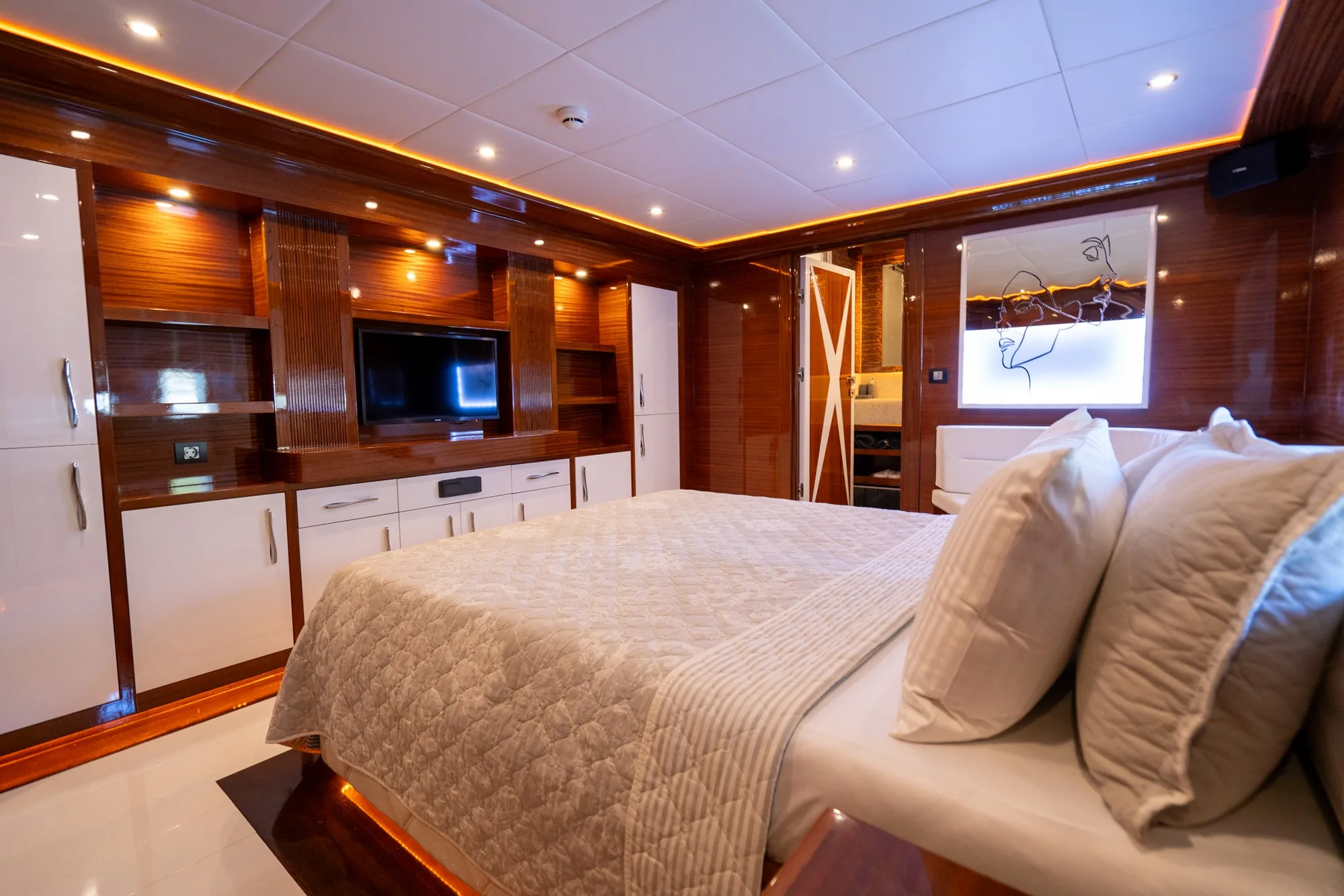 Per le sue caratteristiche questo caicco è un mix tra un caicco e un motoryacht, e può ospitare fino a 10 ospiti in 5 eleganti cabine (1 armatoriale, 3 matrimoniali e 1 con letti singoli)