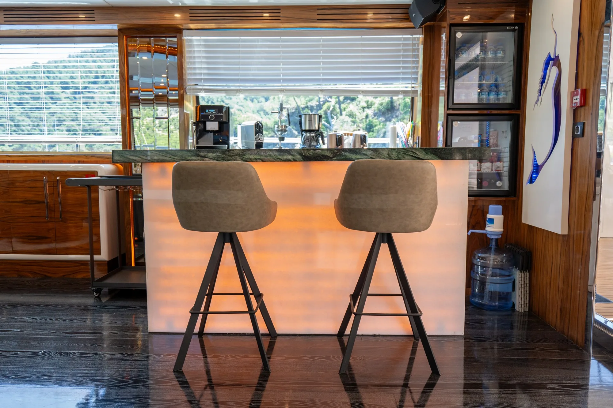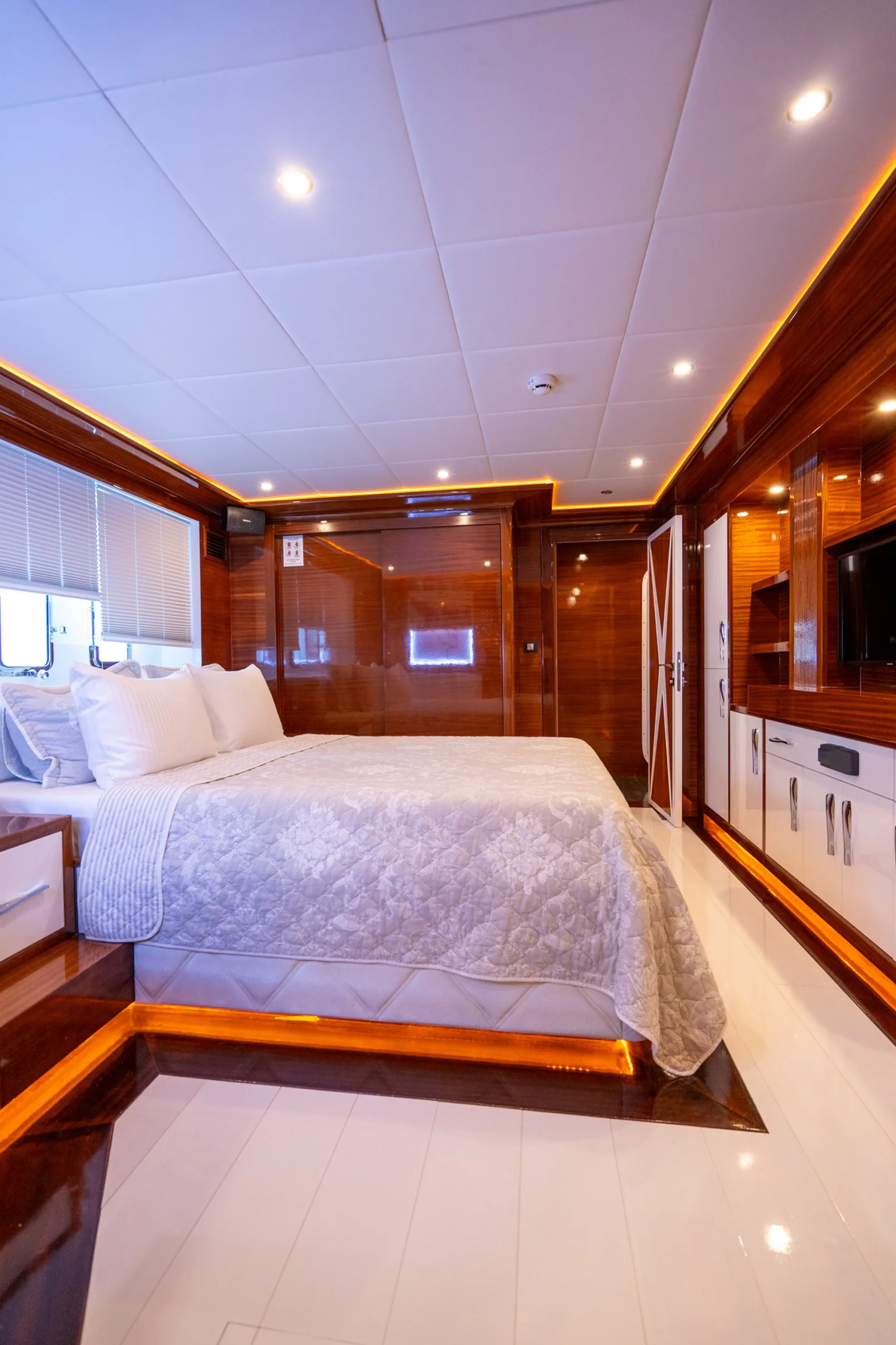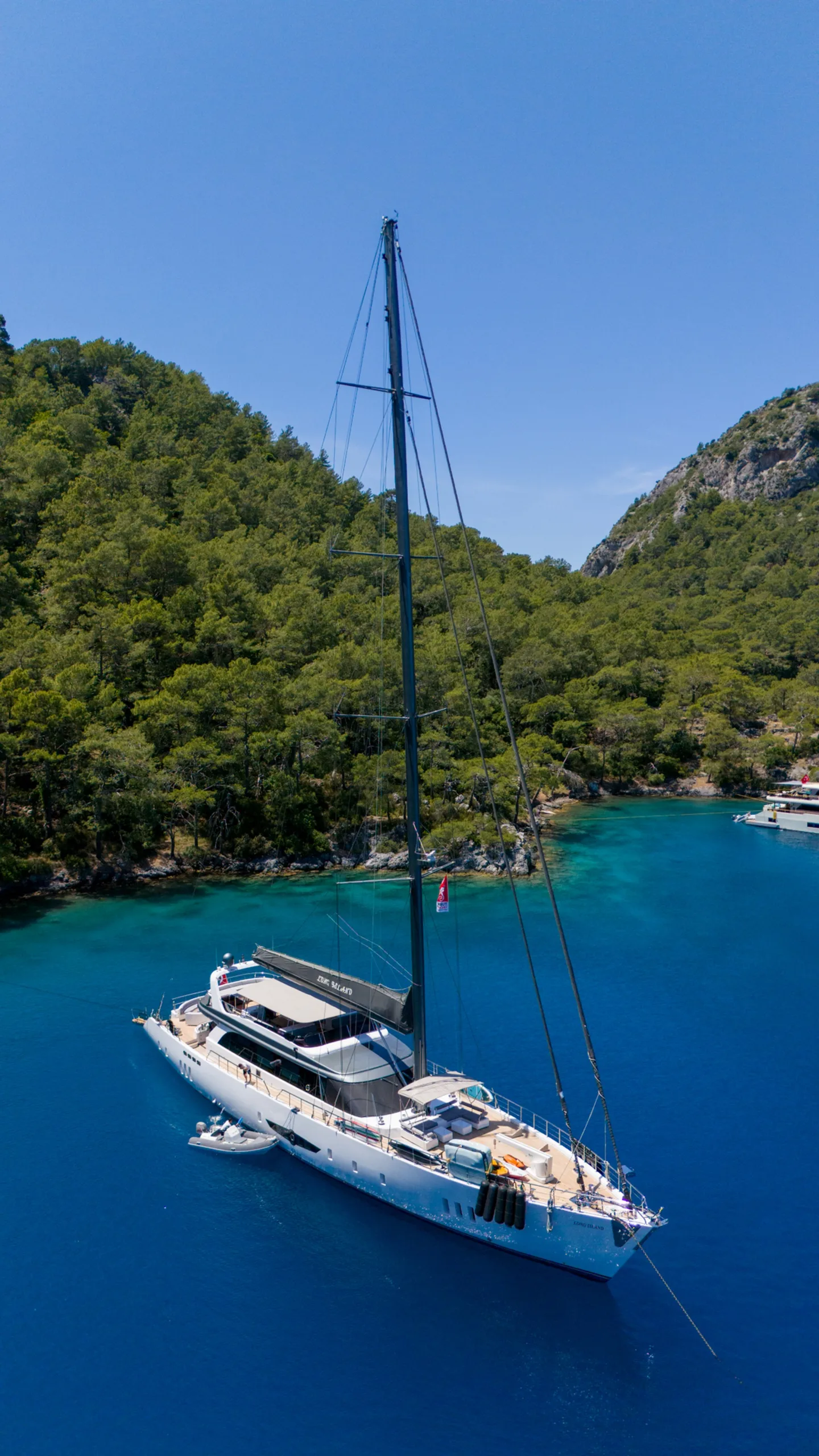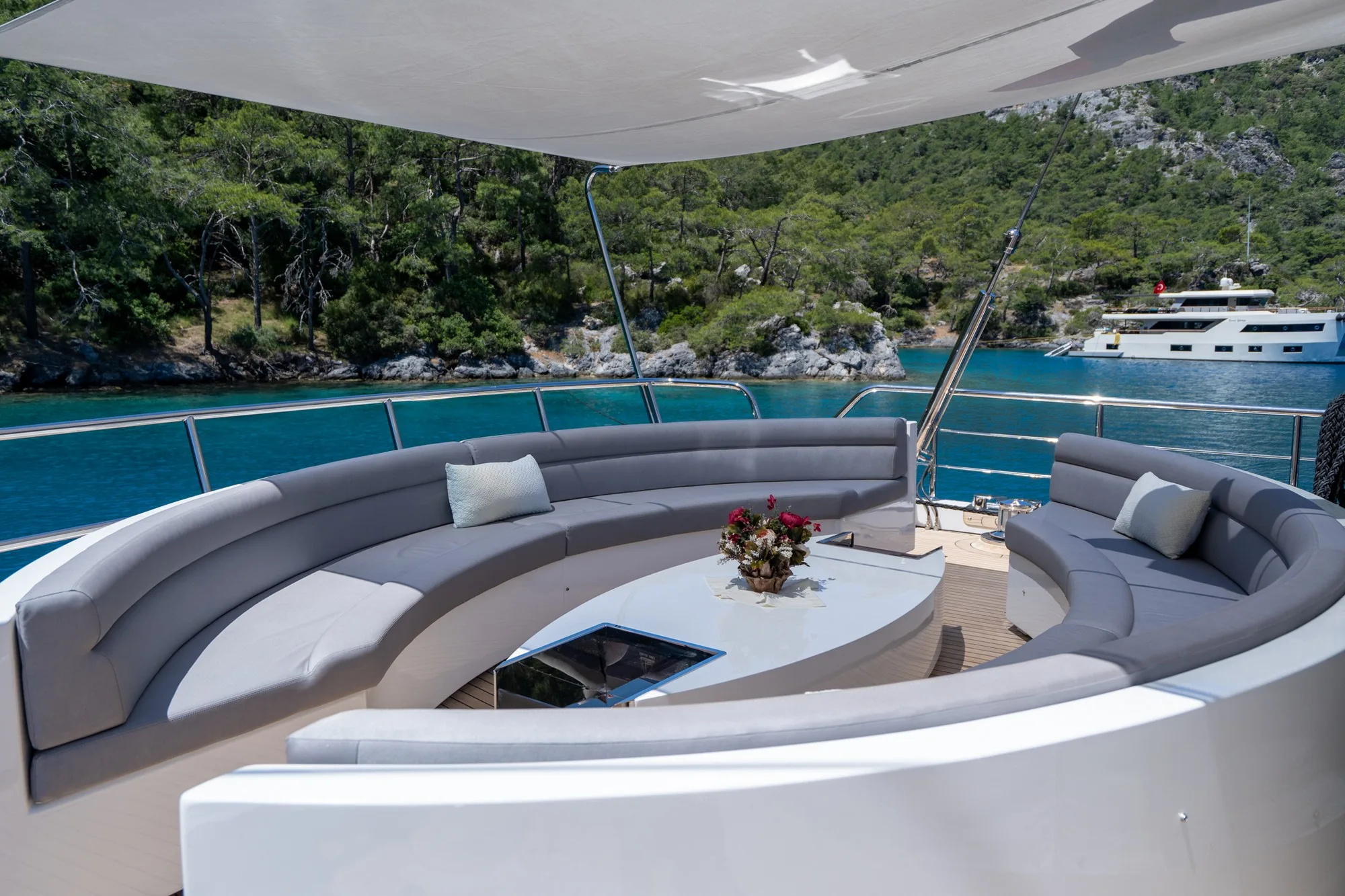 Per le sue caratteristiche questo caicco è un mix tra un caicco e un motoryacht, e può ospitare fino a 10 ospiti in 5 eleganti cabine (1 armatoriale, 3 matrimoniali e 1 con letti singoli)