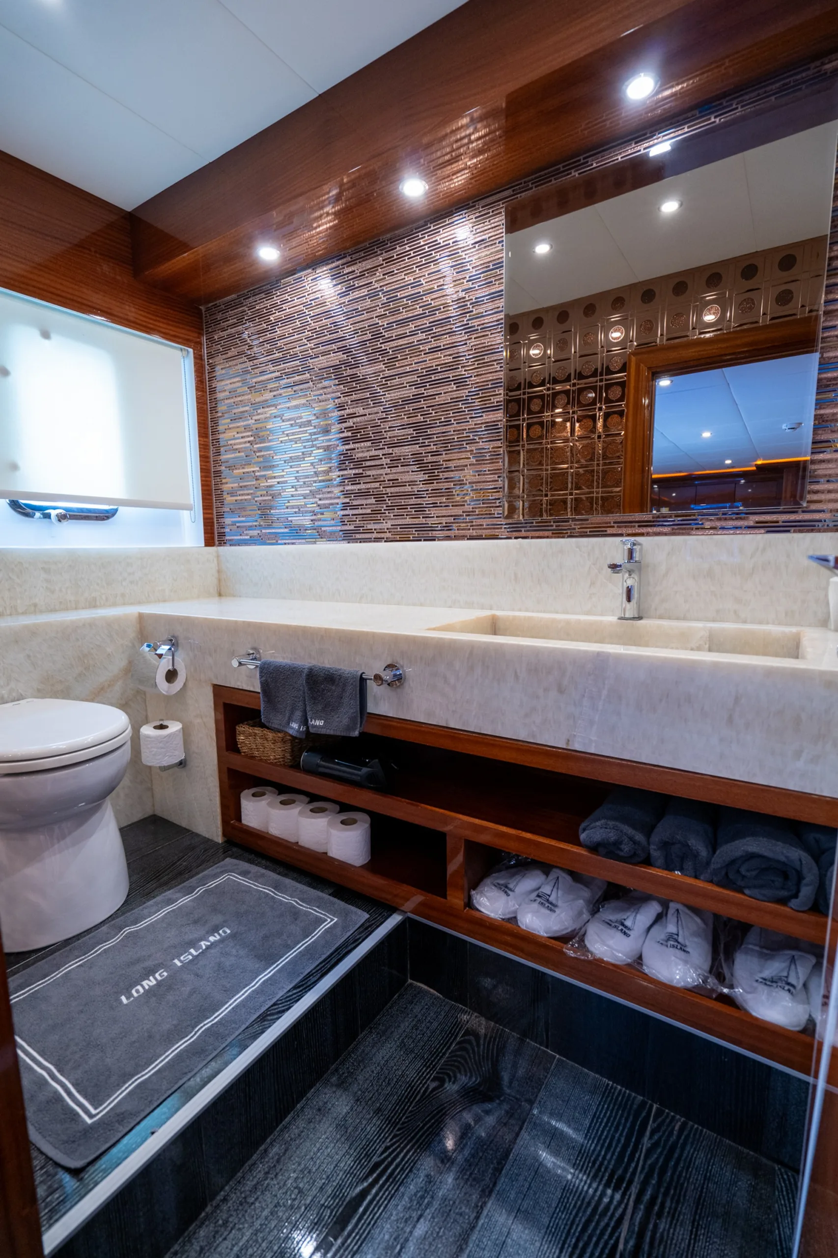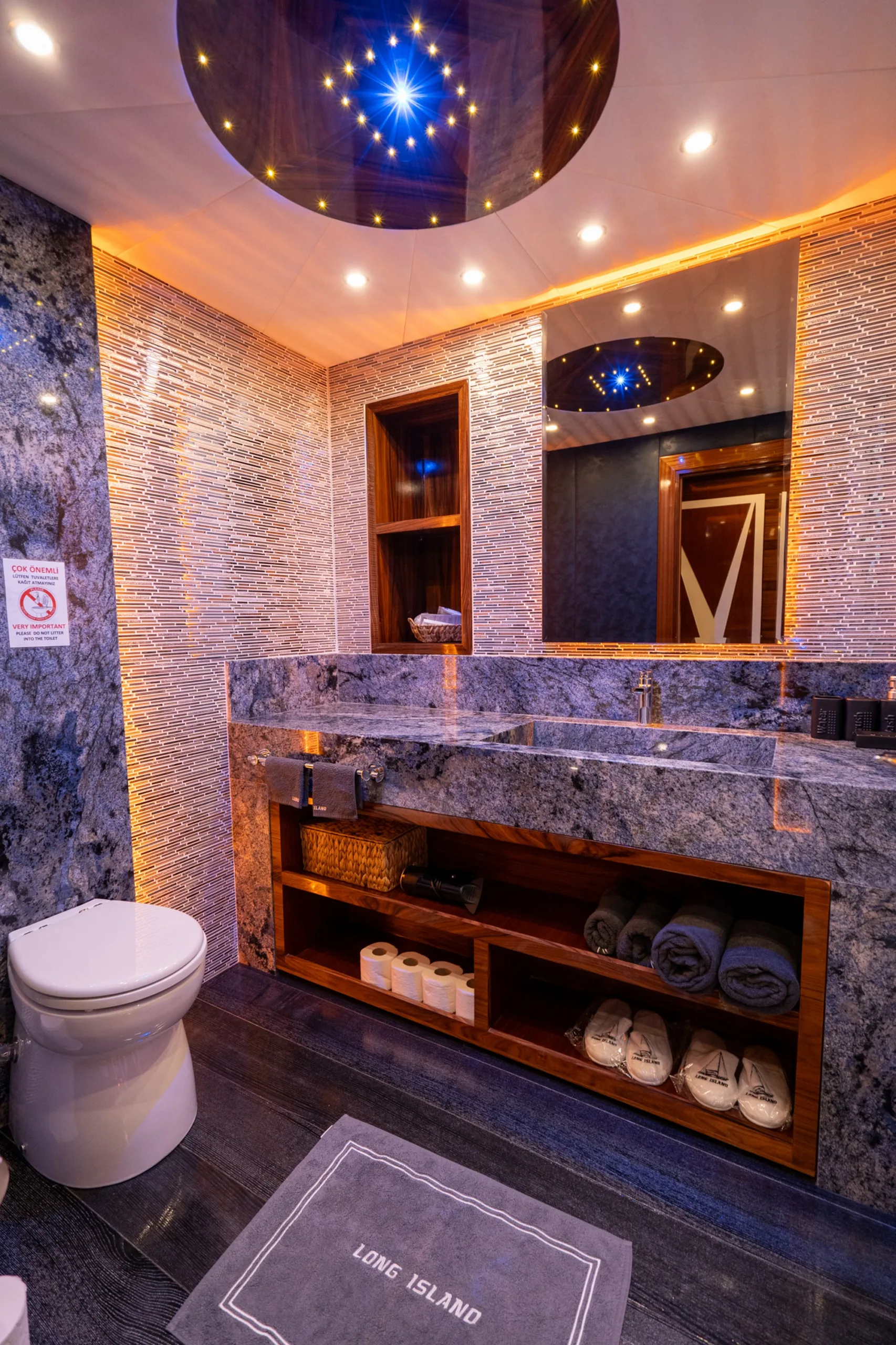 Il caicco Long Island può ospitare 10 persone in 5 cabine così configurate: 1 cabina armatoriale, 3 cabine doppie con letto matrimoniale, 1 cabina twin con letti singoli.